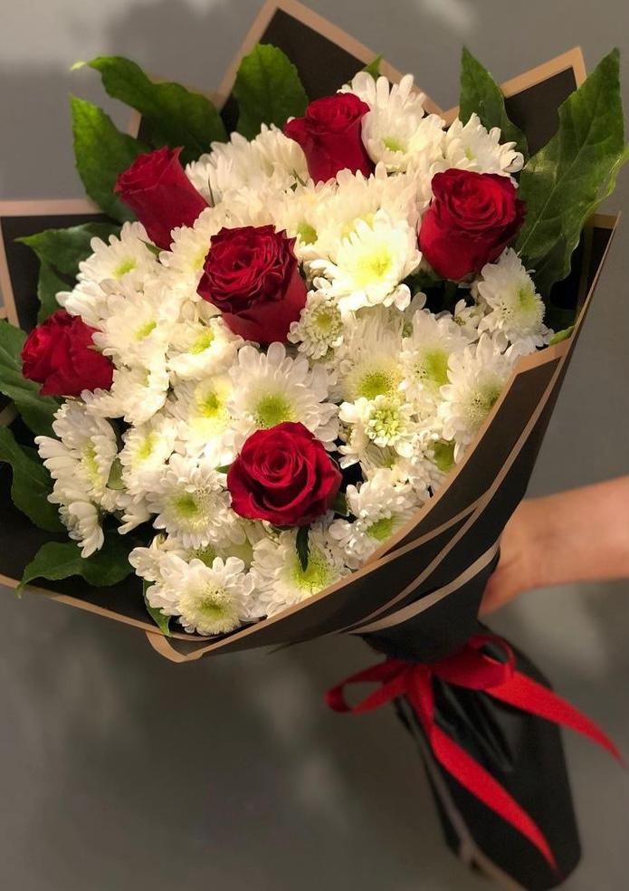 Beyaz Papatya Kırmızı Gül Buketi