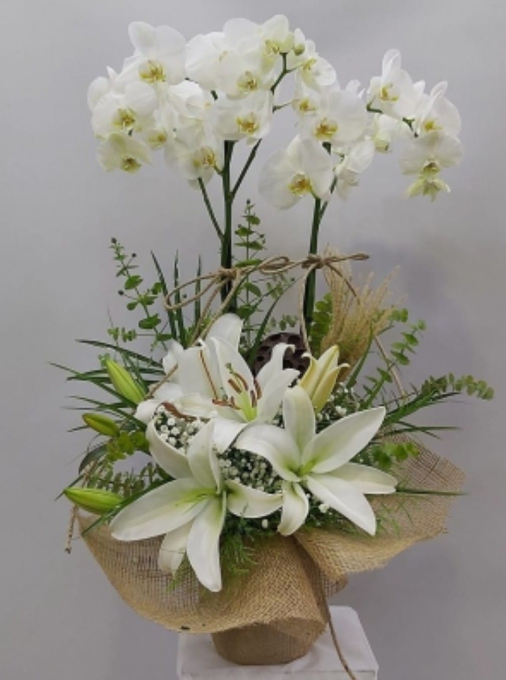 Saksıda Beyaz Orkide, Beyaz Lilyum Arajman