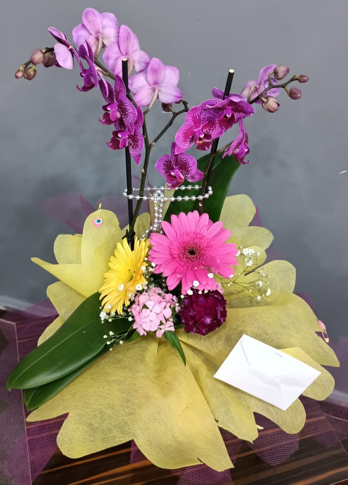 Saksıda Mor Orkide İki Dal Mor Çiçek Aranjman